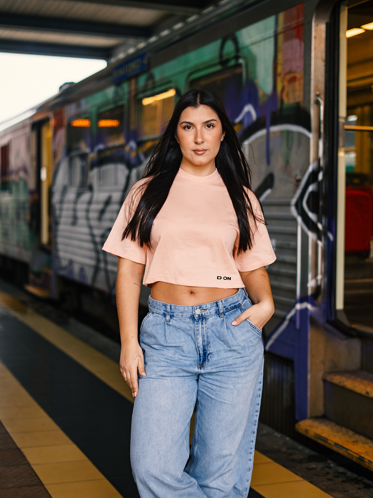Um crop top clean e certeiro: corte curto, atitude urbana e design minimal